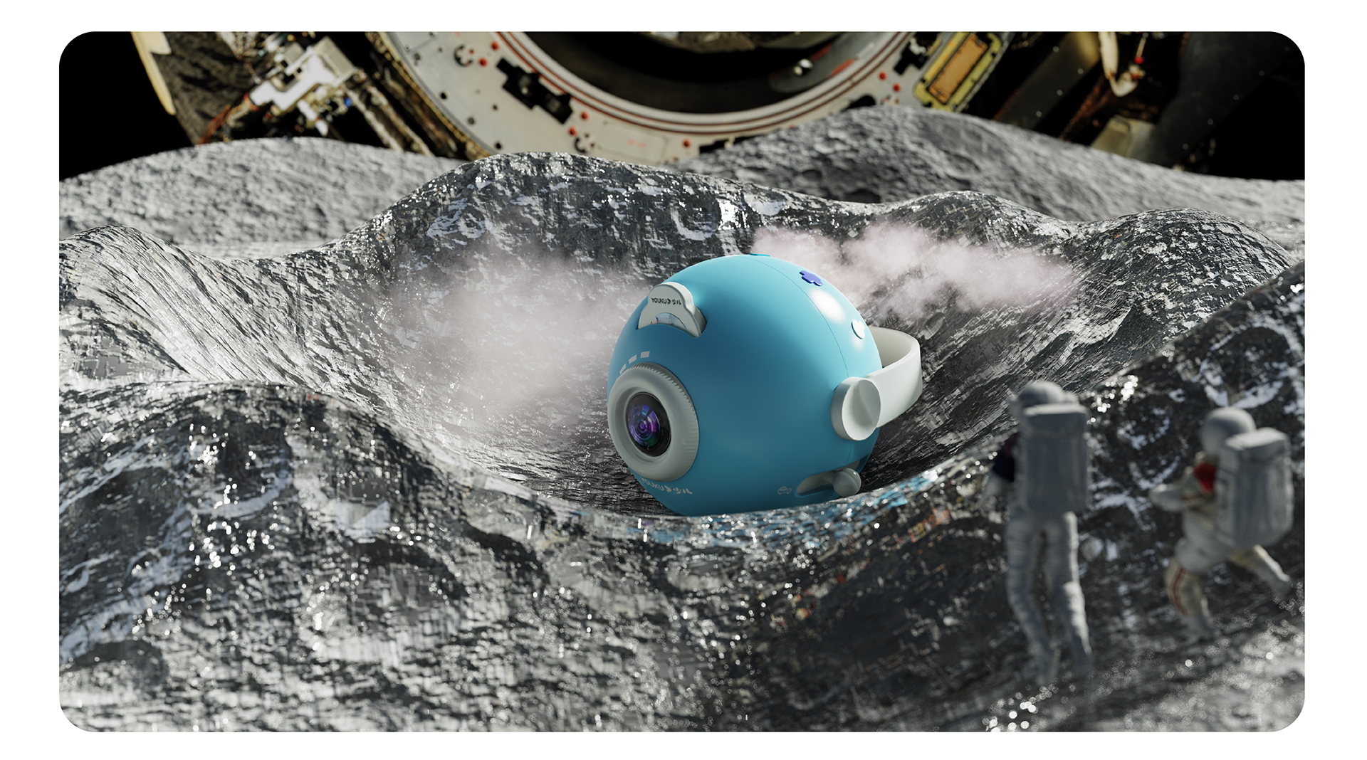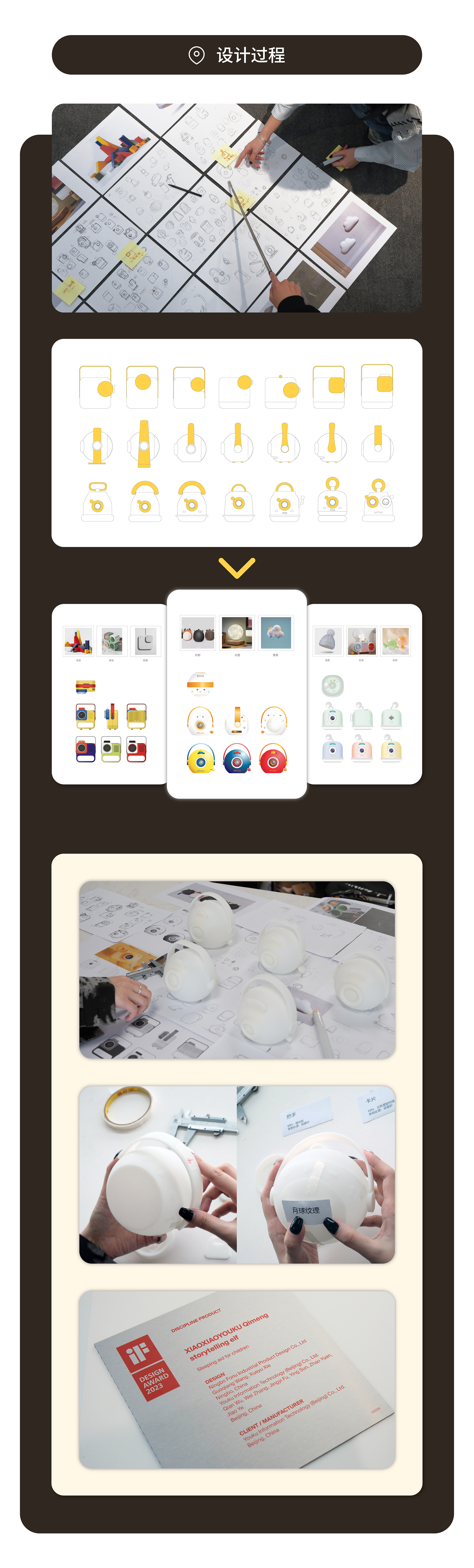 造型灵感源于望月,用月亮的球体形态表现机身的圆润感,增加亲和力,利用色彩的搭配提高 产品的活力。并设计有投影故事,卡片检索播放故事,音画同步,带来三维立体式体验。投影 反射光线温和不刺激。智能语音唤醒,呼叫“Xiaoku”即可开机使用,提升儿童使用体验感。 “多维场景”的特性对市场具有强有效的吸引力,改善现有市场单一场景哄睡的方式。还拥有 少儿优酷的故事资源,针对儿童的成长,制定独家的育儿计划,在不同的年龄听适合的故事, 帮助父母培养儿童的正确的价值观。解放父母夜晚的时光,培养孩子独立健康快乐的成长。
